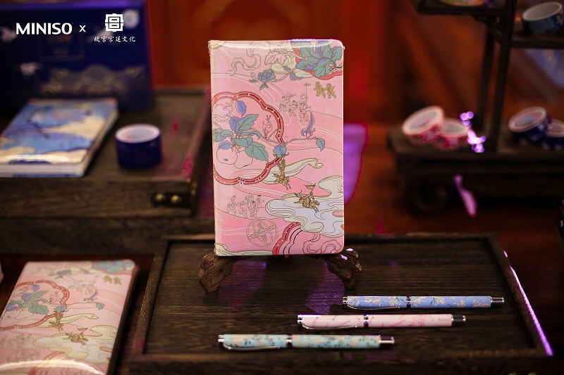 走進詩情畫意,琴聲叮咚的清代院落,名創優品以“聲色香”為切入點,讓故宮六百年的積淀化為靈感,為與會者打造了一場沉浸式的感官盛宴。古代的華美與今天的精致毫無阻礙地融匯在一起,引發了與會者一波接一波的掌聲。其中,現場以“名創造辦處”命名的產品展示區構思尤為巧妙,將名創優品的創新基因與故宮厚重的文化底蘊有機地融為一體。共展出生活百貨、文具、飾品10大品類,涉及香薰、筆記本、單肩包、水杯、手機殼等多款故宮宮廷文化聯名周邊,琳瑯滿目,頗多令人愛不釋手的潛力爆款。