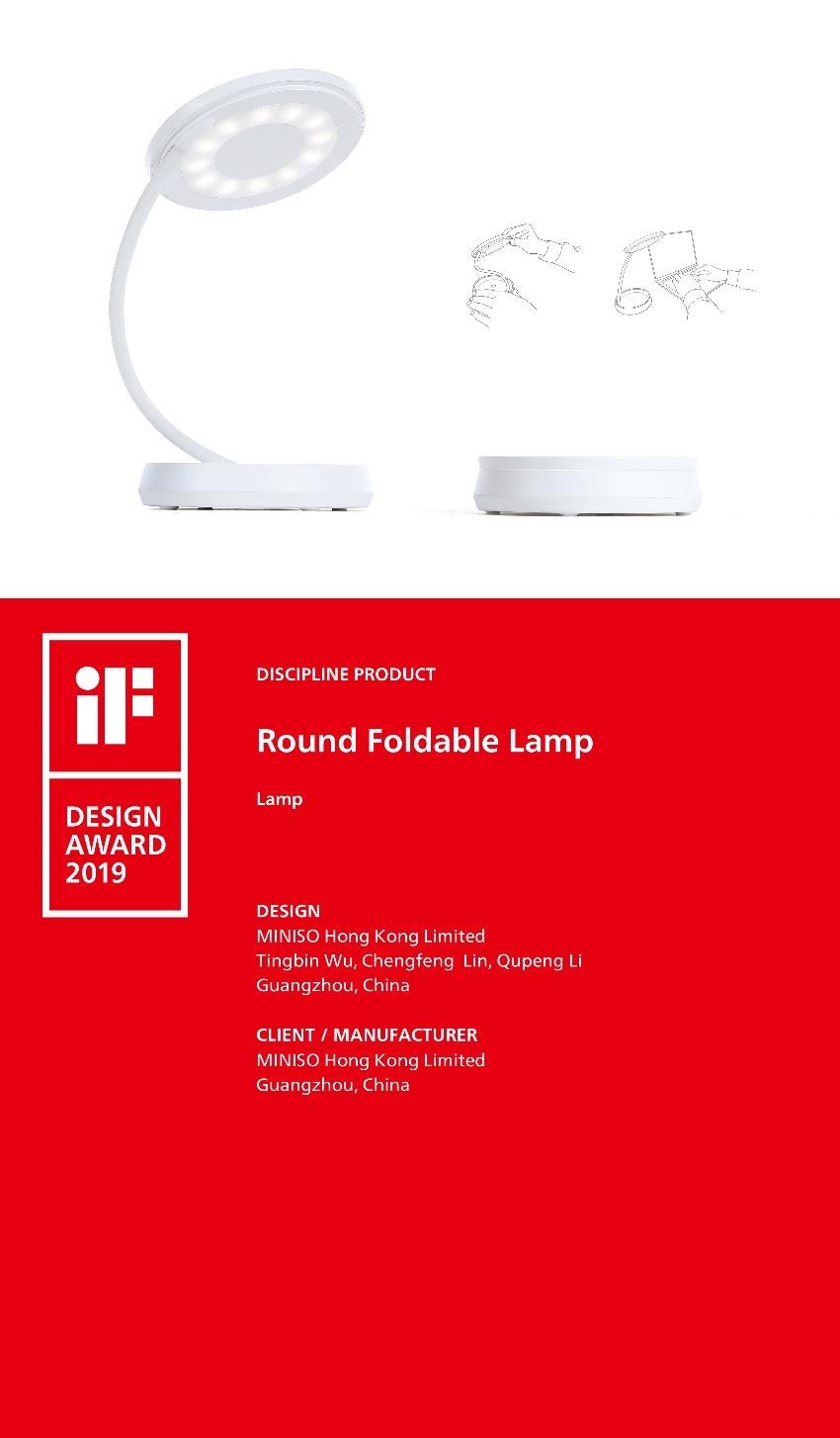第二款獲獎產(chǎn)品圓折燈,最大的特點就是折疊式的設(shè)計理念,當(dāng)不使用燈具的時候,輕輕合上,讓它安靜低調(diào)地躺在桌面的角落,當(dāng)你使用的時候,只需要向上拔起,就可以照射到不同的角度。
