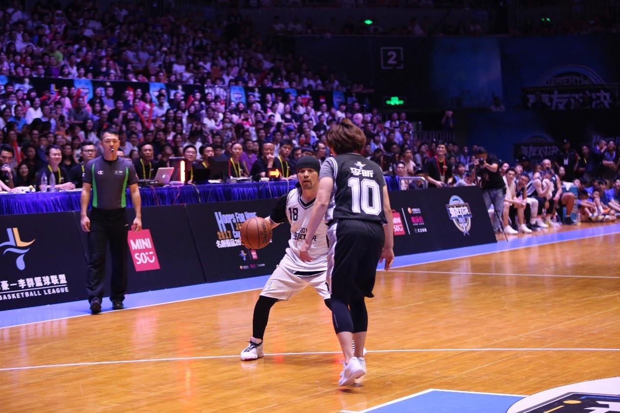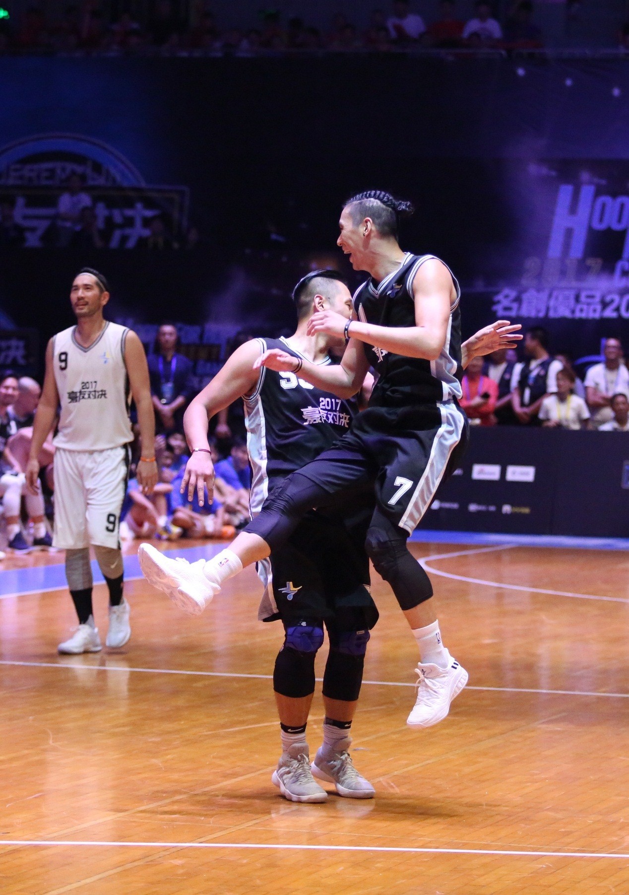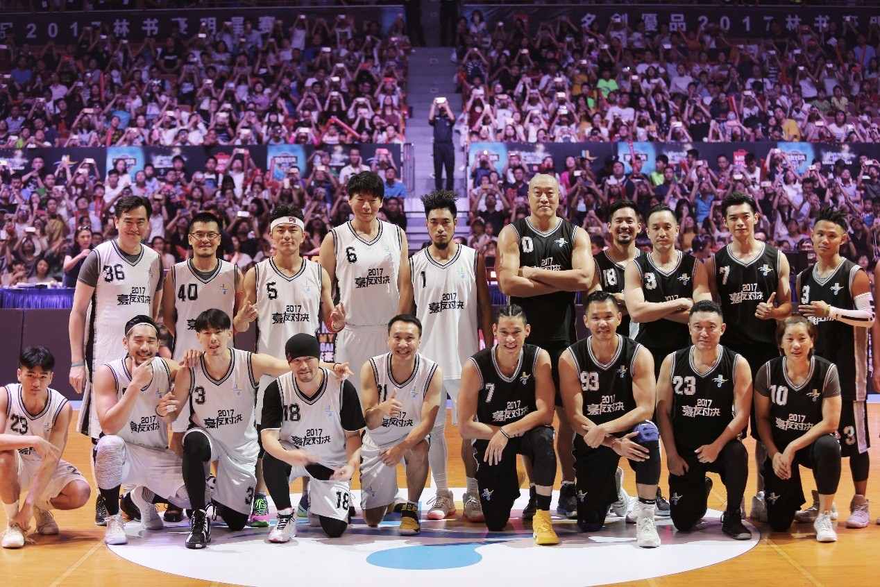 (圖示說明:名創(chuàng)優(yōu)品2017林書豪明星賽匯集了眾多文體明星)“黑白”的“豪”友對決“燃爆”全場,黑隊以NBA布魯克林籃網(wǎng)隊華裔球星林書豪領軍,包括陳建州、唐志中、辰亦儒、馬健等;白隊則以前男籃國手李群為首,包括周杰倫、吳建豪、高以翔、吳建豪、張寧江等。明星和專業(yè)籃球員均有不俗的表現(xiàn),作為主場東道主的林書豪在第三節(jié)忽然發(fā)力, 7次命中三分球,再現(xiàn)“林瘋狂”制霸賽場,單人全場得分高達52分;萬眾矚目的周杰倫球場???,引得粉絲尖叫,多次助攻也為白隊貢獻不少;最深藏不露的居然是名模高以翔,在最后一節(jié)的比賽中,白隊以1分之差落后,他以一記絕殺“8”分的三分球(特殊賽制:明星三分球命中算8分)反轉比分,讓周杰倫所在的白隊逆襲,以136:127戰(zhàn)勝林書豪的黑隊。