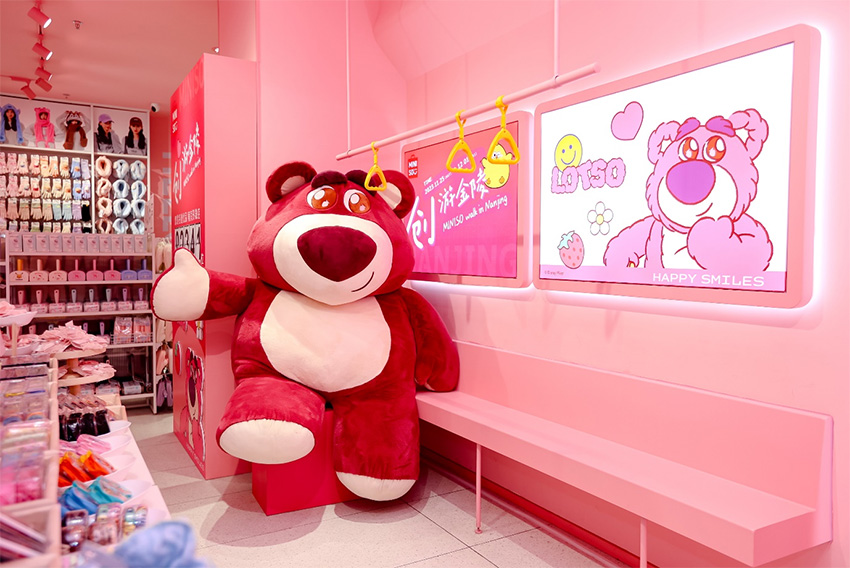 (圖片說明:名創優品南京城市形象店“草莓熊車站”)