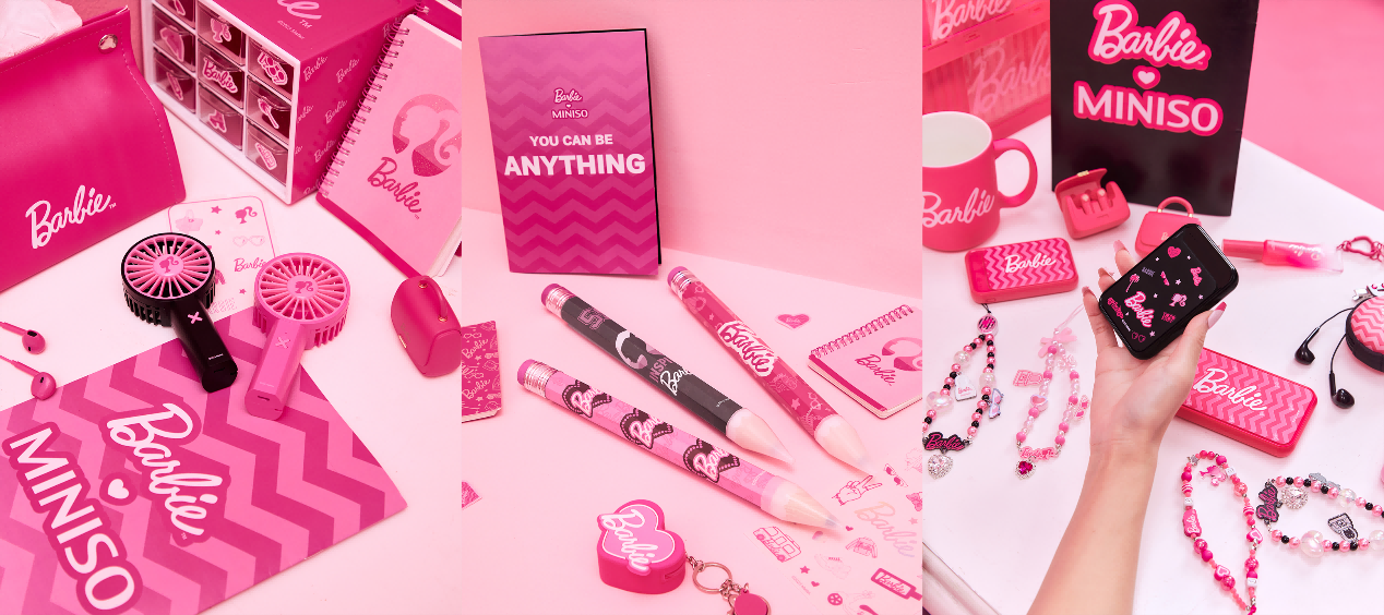 名創(chuàng)優(yōu)品此次攜手芭比,承襲了芭比“You can be anything”的經(jīng)典態(tài)度,上線120+款涵蓋生活百貨、飾品、包袋、彩妝、寵物、文具等多種品類的聯(lián)名新品,滿足穿搭、出行、家居、養(yǎng)寵、辦公等多個(gè)場(chǎng)景的搭配需求。同時(shí),名創(chuàng)優(yōu)品還特別為全國(guó)多家門店的芭比女孩們準(zhǔn)備了芭比手拎紙袋、芭比粉搭紙、芭比限量帆布袋等精美贈(zèng)品,讓芭比粉潮流席卷生活的各個(gè)角落。
