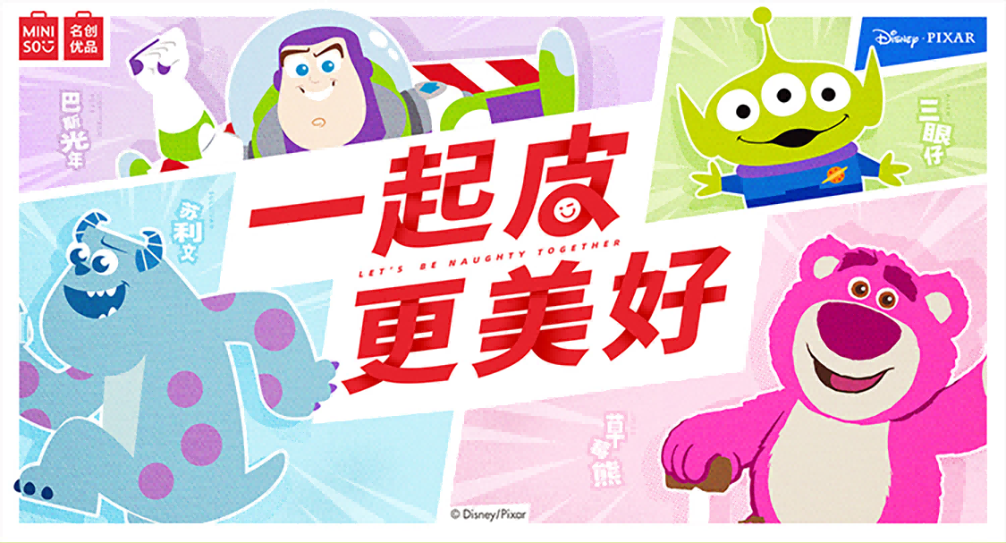 名創優品在2020年正式與迪士尼合作,從此掀起了迪士尼IP聯名的狂熱玩法。迪士尼一直注重創新和創造力,旨在創造富有想象力并感人至深的歡樂世界,作為迪士尼的子公司,皮克斯也承繼了相同理念,而這種理念也延續到了名創優品的營銷活動中。
