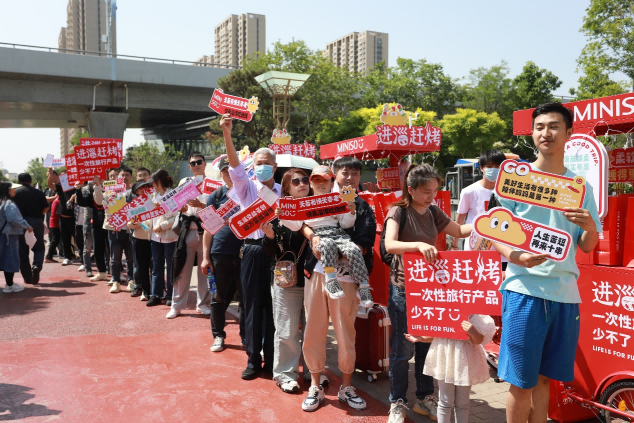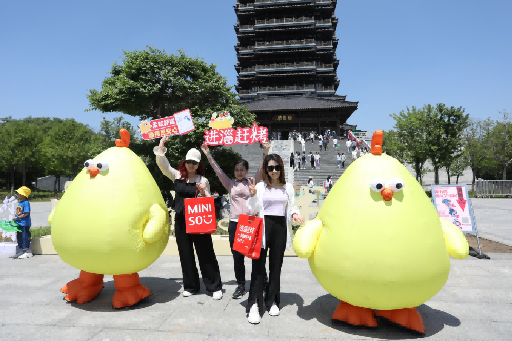 除此之外,名創(chuàng)優(yōu)品還打造三輛吸睛的特色小推車走上街頭,開啟了為期三日的“全城巡游”,自有IP“墩dun雞”化身人偶與用戶親密互動(dòng),攜“燒烤大禮包”驚喜亮相八大局、海月龍宮、海岱樓等游客熱門打卡點(diǎn),名創(chuàng)優(yōu)品一次性旅行產(chǎn)品大禮包派送活動(dòng)持續(xù)升溫,吸引了淄博當(dāng)?shù)乇姸嘤慰妥园l(fā)拍照打卡分享。