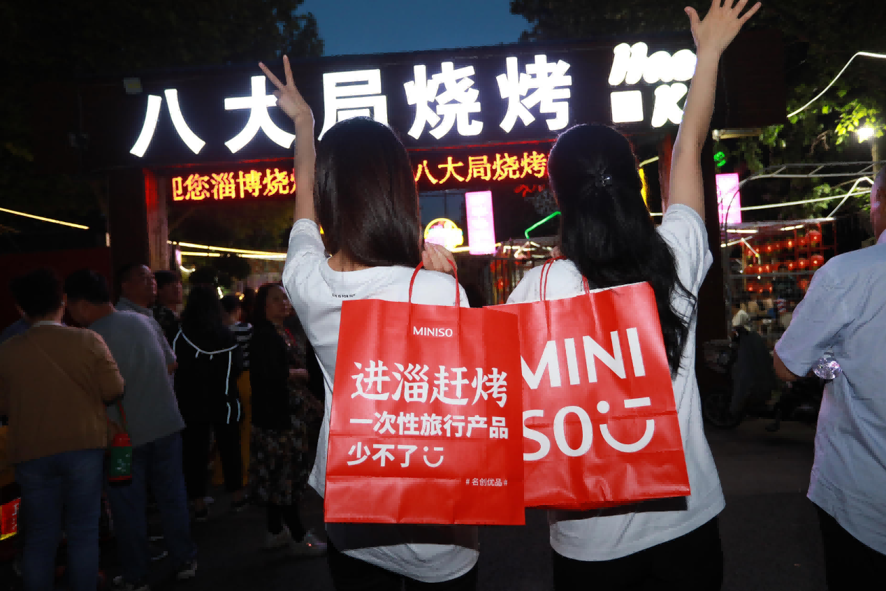 為了更好地融入各個(gè)消費(fèi)場景,名創(chuàng)優(yōu)品深入淄博打造多元化的線下互動(dòng)玩法,借助多樣場景讓品牌與消費(fèi)者零距離互動(dòng),利用旅行和燒烤離不開的一次性旅行產(chǎn)品不斷滲透至當(dāng)?shù)氐穆糜尾惋嬍袌觯谙M(fèi)者心中樹立起“出來玩吃燒烤,名創(chuàng)優(yōu)品一次性旅行產(chǎn)品少不了”的認(rèn)知。
