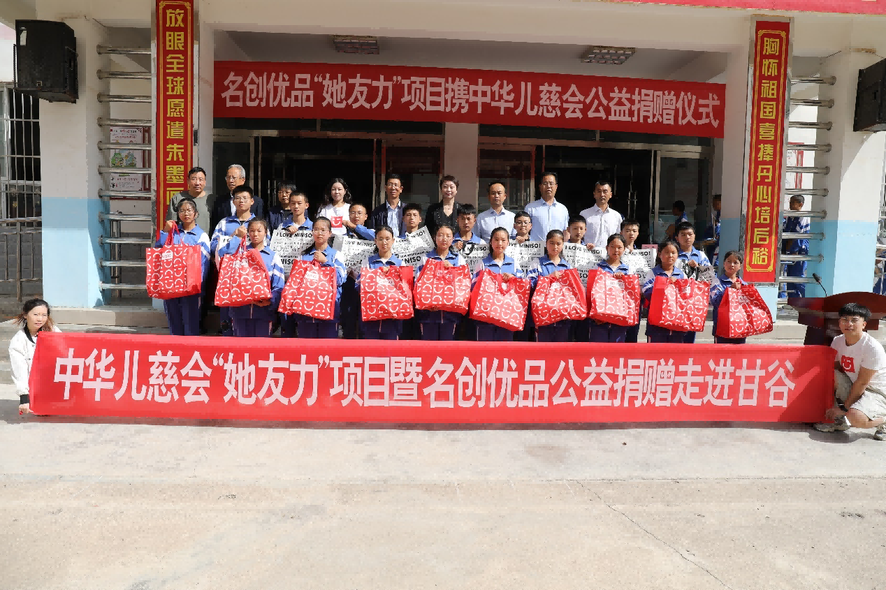 名創優品自2021年攜手中華少年兒童慈善救助基金會推出“她友力”公益項目,此次為甘肅省天水市甘谷縣四所學校超過1000名學生捐贈了衛生巾、書包、筆記本、筆、雨傘、便當盒、餐具、保溫杯等總價值超過20萬的生活教育物資,同時攜手TOP TOY、摘星閣、谷雨等品牌一齊助力,共同為發展中地區的留守女童帶去幫助,希望達到一加一大于二的公益影響力。