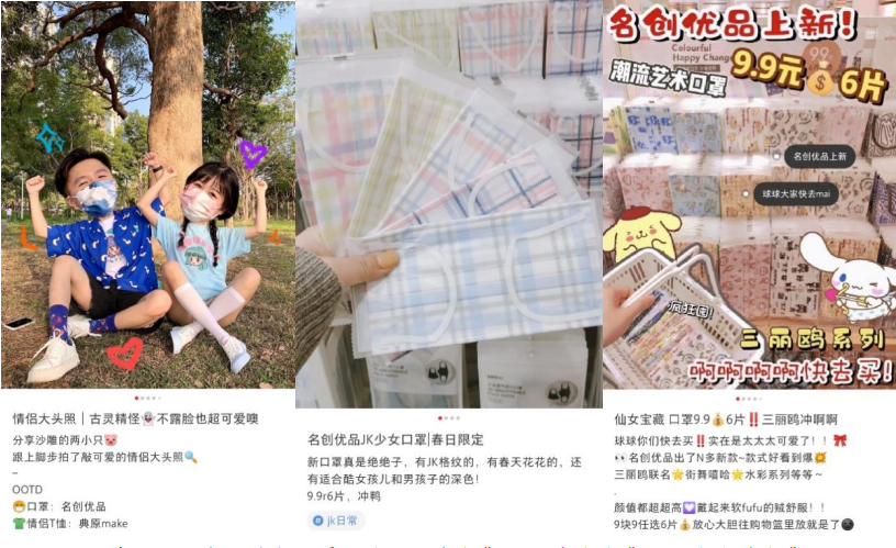 新消費品牌崛起的底層產品邏輯,就是產品具備高顏值、高品質、新奇的特點,滿足消費者差異化的需求,打造強社交貨幣感。撞色拼接、潮酷運動風、甜萌IP、抽象化的現代設計、山水畫水墨畫的傳統文化元素等,名創優品潮流藝術口罩的設計,不僅為用戶提供功能性和實用性,更能滿足用戶社交分享情感需求,反之,這種分享熱潮也將潮流藝術口罩塑造成為“強社交貨幣感”的產品,用戶在社交媒體平臺自發熱議分享種草。