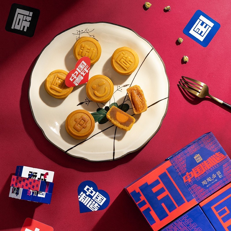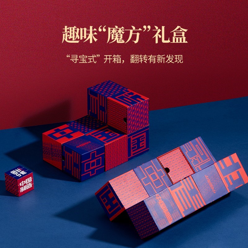 在包裝及設計上,MINISO×陶陶居聯名月餅禮盒首次以“中國制造”為主題,紅藍的配色凸顯潮派個性,而最別出心裁的莫過于其可翻轉變形的趣味魔方設計。魔方般的造型設計,可多次翻轉變形,多種造型自由切換,每次翻轉都可以解鎖隱藏小抽屜,獲得月餅或驚喜的贈品。禮盒的贈品一共有3款,包括魔方、萌力星球TUTU車系列擺件、中國制造系列貼紙,而每個禮盒內藏有一組贈品,內含有2款產品,比如組合1是魔方+TUTU車,組合2是魔方+貼紙,消費者購買聯名月餅禮盒時可選擇不同的贈品組合。此次名創優品攜手陶陶居推出聯名月餅禮盒,集復古與時尚于一體,國潮風十足。你還可以邊吃邊玩,收獲“尋寶”般的趣味體驗!